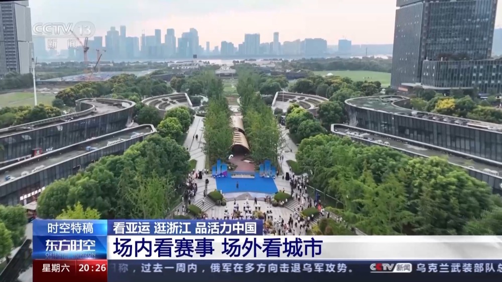 總臺記者 孫銳:這里是杭州市蕭山區(qū)的錢江世紀公園,每到傍晚這里就會格外熱鬧,大家圍著亞運觀賽空間看比賽,或到附近的亞洲花卉主題展園賞花;又或者到錢塘江邊的綠道上吹吹江風(fēng),感受秋意。