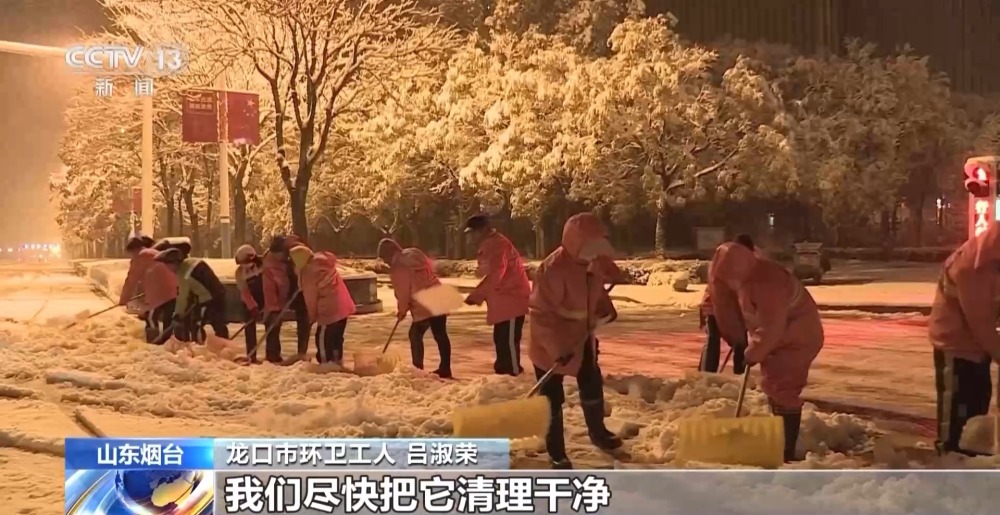 山東煙臺龍口市環(huán)衛(wèi)工人 呂淑榮:我們工人5點鐘就上崗了,一點也不好清理,我們盡快把它清理干凈。