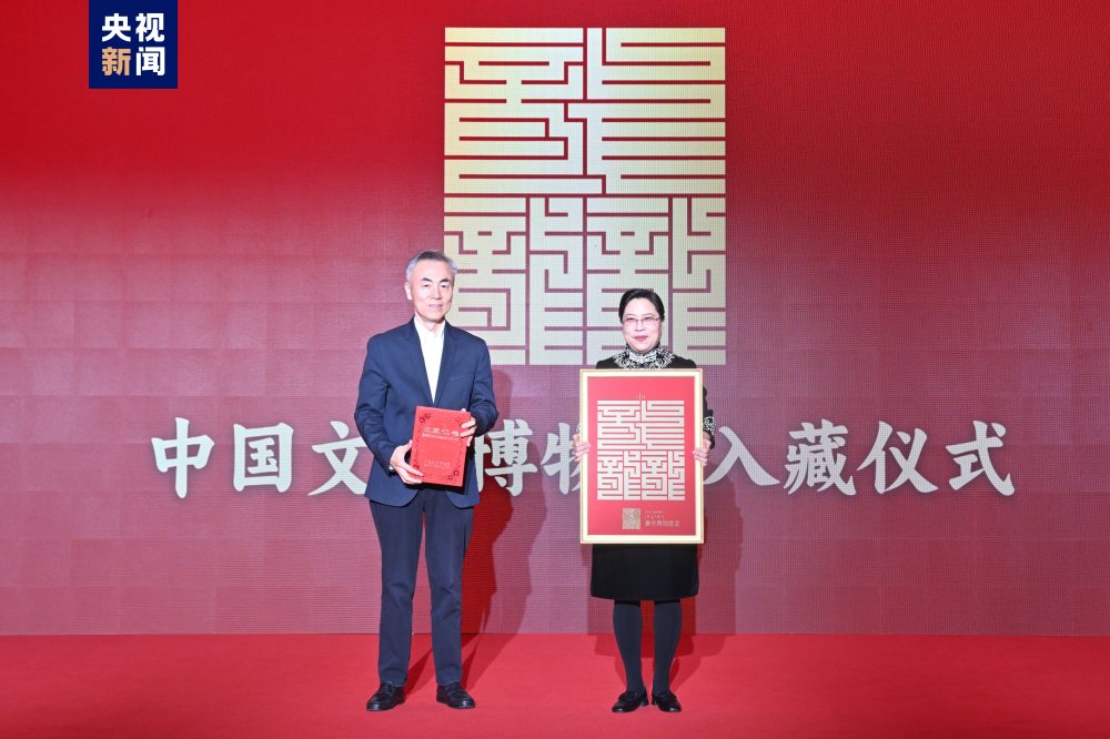 發(fā)布儀式上,2024年總臺(tái)春晚主標(biāo)識(shí)被中國(guó)文字博物館正式收錄入館。2024年總臺(tái)春晚主標(biāo)識(shí)的“龘”字,整體設(shè)計(jì)以中國(guó)傳統(tǒng)篆刻藝術(shù)中極具特色的“國(guó)朝官印”字體——九疊篆為靈感來源,莊重平衡、中正勻稱,彰顯出大氣雄健的文化氣象??偱_(tái)春晚以“龘”字為題眼,用“龘龘”之姿生動(dòng)描摹十四億中華兒女奮發(fā)有為、昂揚(yáng)向上的精神風(fēng)貌。