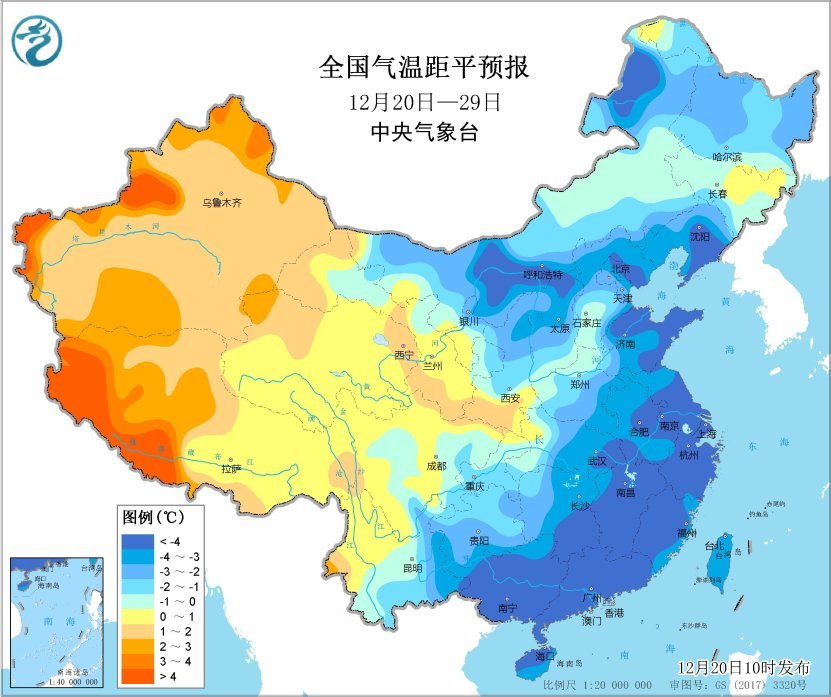 過(guò)去10天,受寒潮影響,長(zhǎng)江及其以北地區(qū)氣溫由前期顯著偏高轉(zhuǎn)為偏低1~3℃,其中新疆北部、內(nèi)蒙古東部、東北地區(qū)等地偏低5℃以上;西南地區(qū)、江南南部和華南氣溫偏高1~2℃。