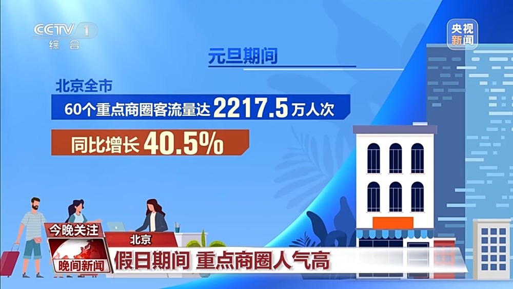 最新數(shù)據(jù)顯示,元旦期間,北京全市60個重點商圈客流量達2217.5萬人次,同比增長40.5%。上海全市35個重點商圈的線下客流總量達到1548萬人次,外來消費發(fā)生消費金額為65億元,次數(shù)高達705.4萬人次。