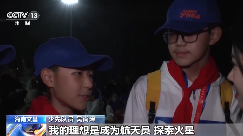 前來文昌追火箭的人,來自五湖四海,在文昌航天發(fā)射場周邊的淇水灣海灘、銅鼓嶺景區(qū)等地,觀眾們早早地做好觀看發(fā)射的準(zhǔn)備。在全國少工委的組織帶領(lǐng)下,來自福建、四川、山西、甘肅等地近百名少先隊(duì)員,走進(jìn)文昌航天發(fā)射場,近距離感受火箭發(fā)射升空。
