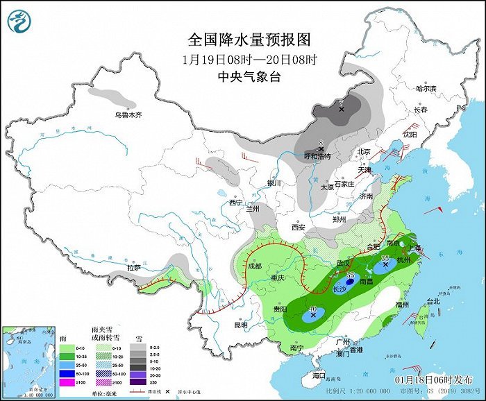 中央氣象臺:今明兩天中東部雨雪持續(xù) 20日起寒潮將強(qiáng)勢入侵