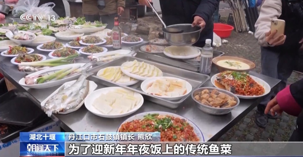丹江口市石鼓鎮(zhèn)鎮(zhèn)長(zhǎng) 熊欣:這些菜從魚(yú)頭、到魚(yú)身、到魚(yú)皮,也是我們當(dāng)?shù)貫榱擞履昴暌癸埳系膫鹘y(tǒng)魚(yú)菜。