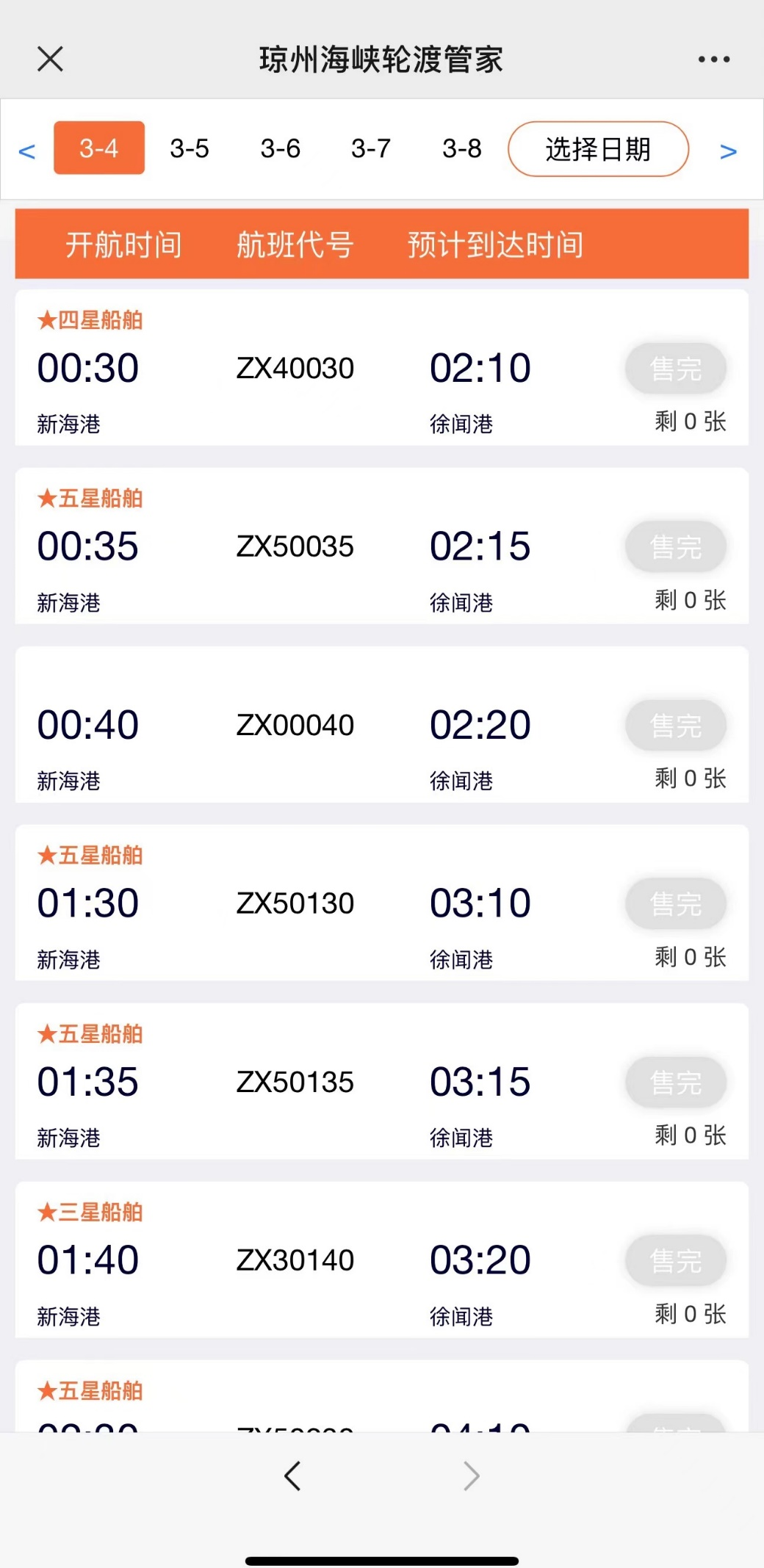 記者18日晚從“瓊州海峽輪渡管家”上查詢發(fā)現(xiàn),3月5日之前從??谛阌⒏?、新海港出港前往廣東湛江徐聞縣的新能源小汽車輪渡船票均顯示售罄;3月5日當(dāng)天及之后的票暫無(wú)法購(gòu)買。劉先生說(shuō):“這已經(jīng)是正常上班的時(shí)間了,至少我們看到周邊的這些新能源車跟初七、初八之前的車輛是相等的;跟去年或者往年比的話,滯留車還是比較多?!?/p>