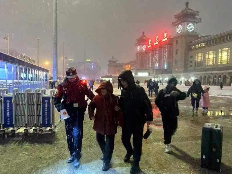 北京豐臺站地區(qū)就采取多種措施應(yīng)對極端低溫天氣,服務(wù)好春運返程夜間集中大客流。增加與鐵路會商頻度,落實每半小時溝通聯(lián)絡(luò)一次,及時準(zhǔn)確掌握列車晚點停運情況,根據(jù)客流情況調(diào)整夜班公交和公交高鐵專線的保障,協(xié)調(diào)網(wǎng)約車企業(yè),保障運力。按照“隨下隨掃”原則進行掃雪鏟冰作業(yè),緊盯東南出站口、連廊周邊、匝道、地鐵口附近、停車場等重點區(qū)域,做好清掃、采取防滑措施并做好防滑提示。在南廣場和地下出租車調(diào)度站,為有需要的旅客和司機提供紅糖姜水。