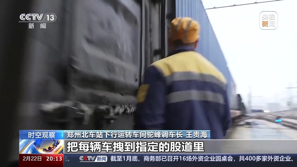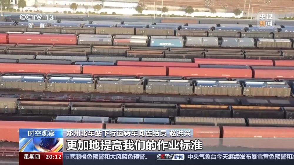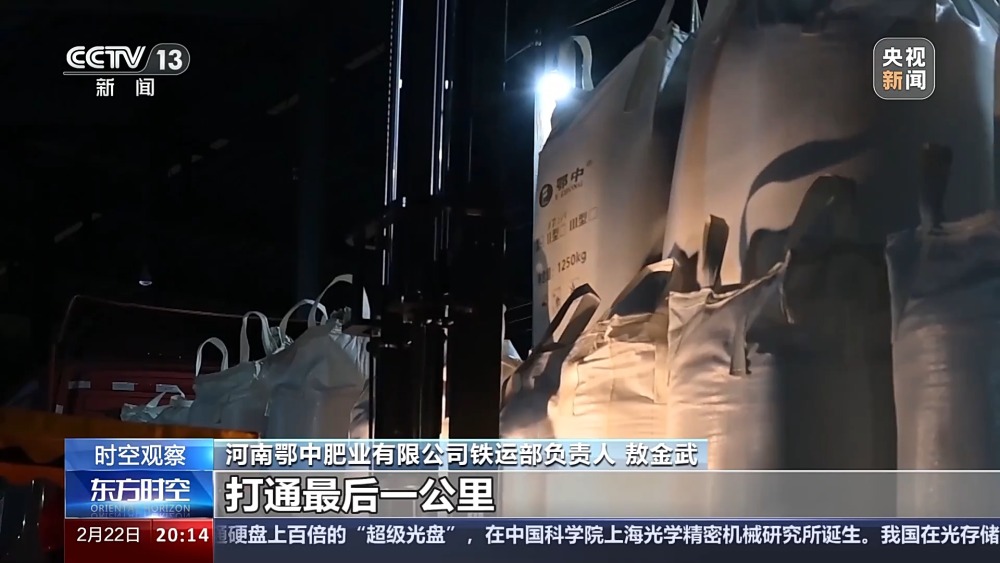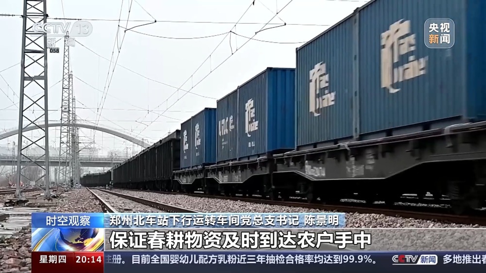 總臺央視記者 蔣樹林:這里是鄭州北車站,也是全國作業(yè)量最大的編組站,大家看我眼前這個車?yán)锩嫜b的就是當(dāng)下春耕所急需用的化肥原料,作業(yè)還在加班加點(diǎn)地往前推進(jìn)。