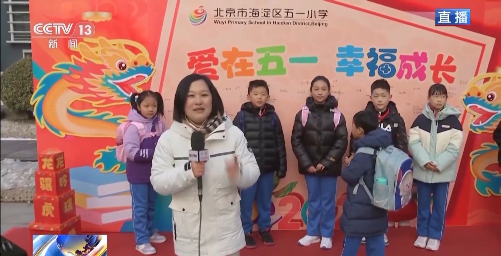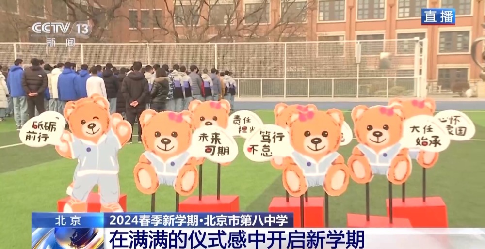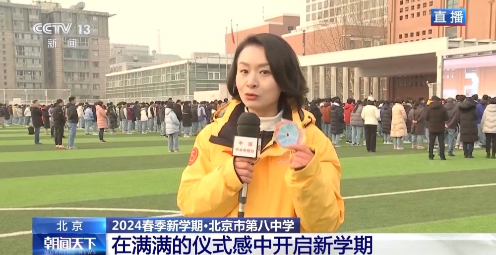 總臺央視記者 李晶晶:北京市第八中學(xué)高中部,近2300名高中生齊聚國旗下,舉行新學(xué)期的第一次升旗儀式,在滿滿的儀式感中開啟新的學(xué)習(xí)生活。今年是龍年,有句祝福語叫“龍行龘龘,前程朤朤”,現(xiàn)在正在進行的國旗下的演講,題目就是《龘龘朤朤間是向上的力量》,老師祝福學(xué)生們像龍一樣騰飛而上,同時也是鼓勵他們要有夢想,為實現(xiàn)夢想不斷努力向上。