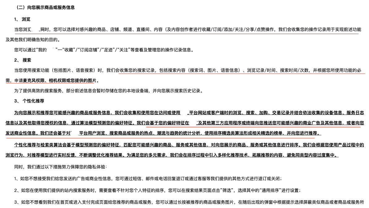 某購(gòu)物平臺(tái)基本功能隱私政策顯示,搜集瀏覽、搜索等相關(guān)信息(央廣網(wǎng)發(fā) 某購(gòu)物網(wǎng)站截圖)