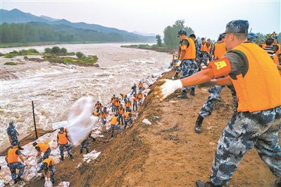 7月19日,空降兵某旅官兵到達(dá)受災(zāi)現(xiàn)場(chǎng)后,迅速向堤壩塌陷處運(yùn)送沙袋。[詳細(xì)] -
