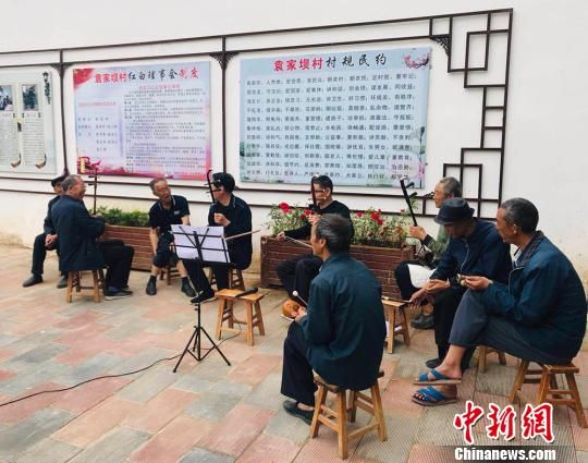 圖為袁家壩村戲劇愛好者組建的興趣小組,老年人們相聚討論戲劇技巧。 艾慶龍 攝