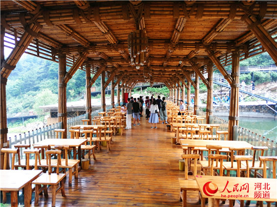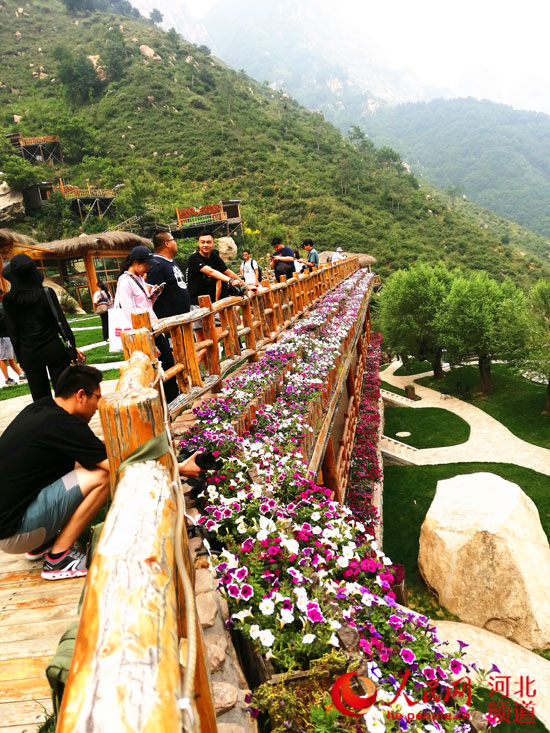 “這里的景色好看,溫度也不高,挺舒服。”在漫山花溪谷景區(qū)的竹廊美食苑休息區(qū),一位頭發(fā)花白的老人說,她和閨女專門從石家莊開車過來玩,從山下爬到這里的。當問到“為什么不坐游覽車上來”,老人笑著說,“坐游覽車上來就沒意思了,我們就是邊爬山邊享受這山里涼爽的空氣和欣賞沿路的景色。這里真是個養(yǎng)老的好地兒?!?/p>