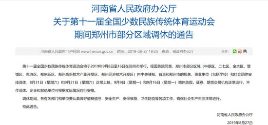 第十一屆全國少數(shù)民族傳統(tǒng)體育運(yùn)動(dòng)會期間鄭州部分區(qū)域調(diào)休