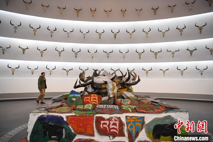 圖為西藏牦牛博物館感恩展廳內(nèi),墻上懸掛的牦牛頭骨。 中新社記者 貢嘎來(lái)松 攝