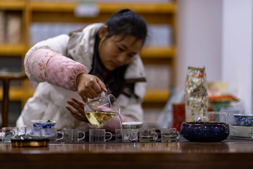 除銷售茶青之外,格林村人正在將茶產(chǎn)業(yè)不斷延伸??床?、喝茶、吃茶飯、體驗(yàn)做茶,圍繞茶和茶園,在政府的支持下,格林村有了自己的品牌,村里還建起了茶葉加工廠,形成茶產(chǎn)業(yè)“一條龍”發(fā)展鏈條?!?023年茶葉廠正式運(yùn)營(yíng)以來(lái),銷售額已經(jīng)超過(guò)千萬(wàn)元?!蔽鞑亓种ツ撌畬毑铇I(yè)有限公司負(fù)責(zé)人陳超說(shuō)。