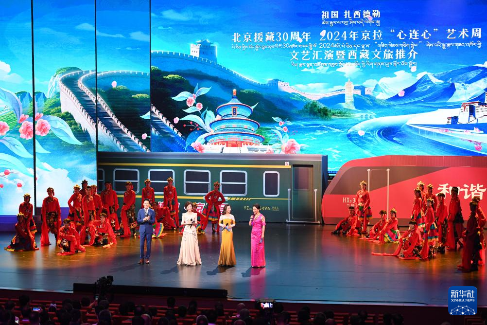 當(dāng)日,“北京援藏30周年·2024年京拉‘心連心’藝術(shù)周文藝匯演活動”在北京藝術(shù)中心歌劇院上演。2024年是北京對口援藏30周年,演出展現(xiàn)北京援藏在民族交流交往交融、服務(wù)保障民生、推動拉薩市經(jīng)濟(jì)社會發(fā)展等方面付出的努力和取得的成績。同時,本場演出也對西藏文旅進(jìn)行推介。
