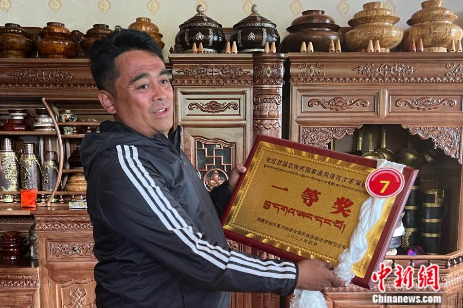 “這是我去年獲得的西藏自治區(qū)首屆農(nóng)牧民國家通用語言文字演講比賽一等獎,我當(dāng)時演講的主題就是民族團結(jié)。”在林芝鎮(zhèn)嘎拉村黨支部宣傳委員、村委會副主任尼瑪多吉家中,主人正自豪地向記者們展示著獲獎牌匾。
