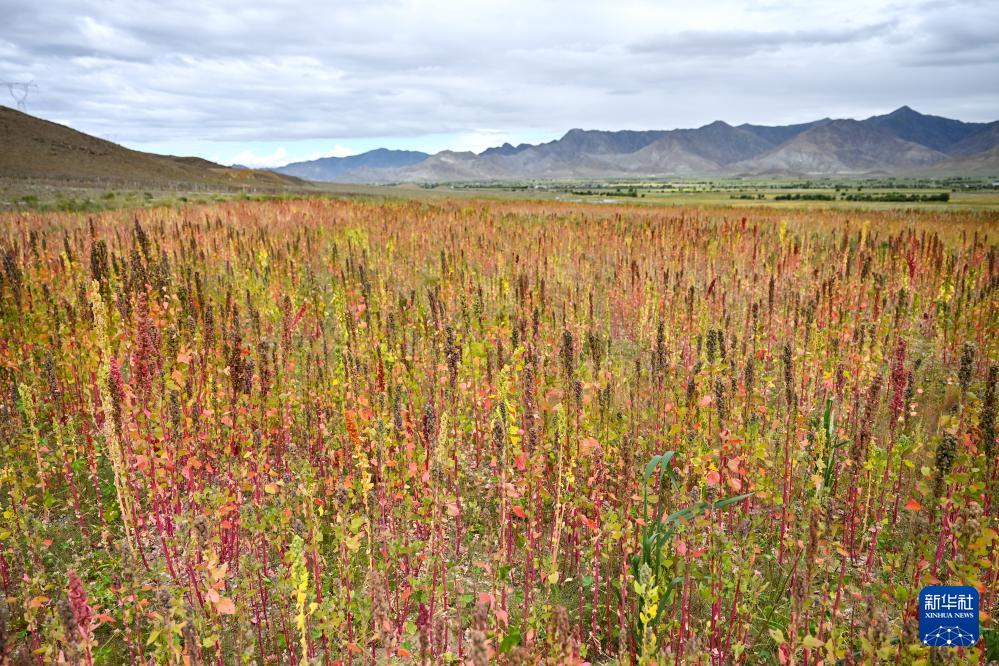 這是在西藏日喀則市薩迦縣扯休鄉(xiāng)拍攝的當(dāng)?shù)胤N植的藜麥(9月4日攝)。新華社記者 孫瑞博 攝