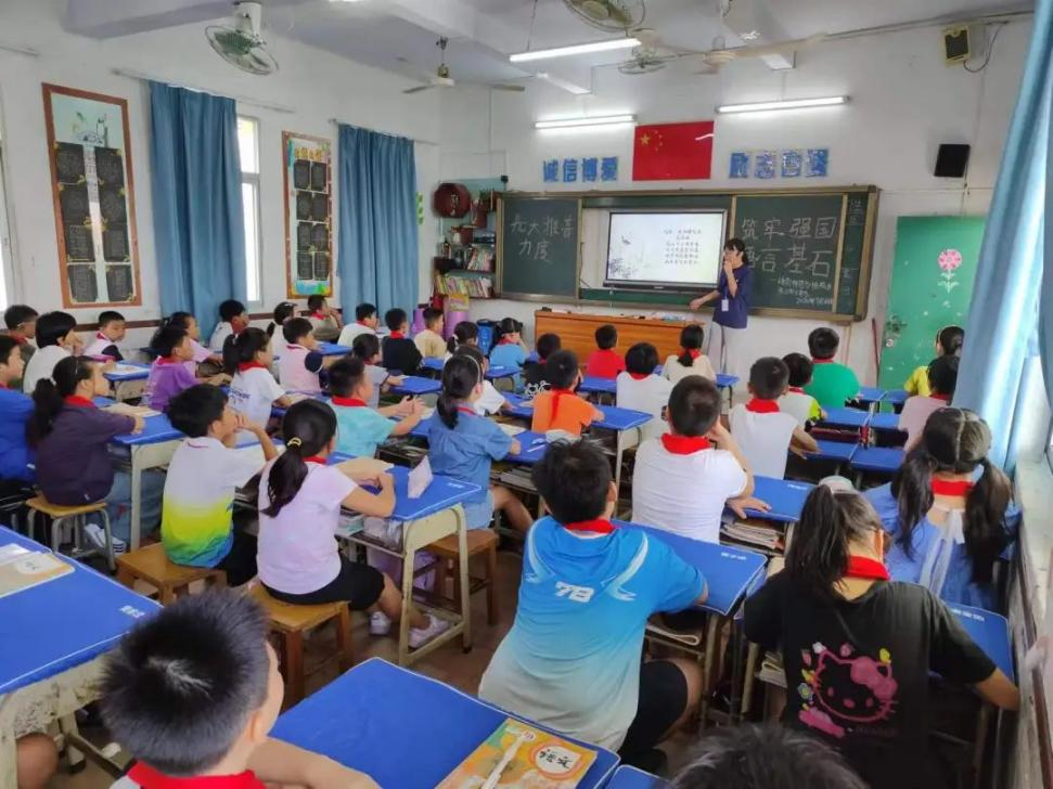 湛江市第四小學(xué)實習(xí)生戴鈺瑩指導(dǎo)學(xué)生誦讀紅色經(jīng)典現(xiàn)場