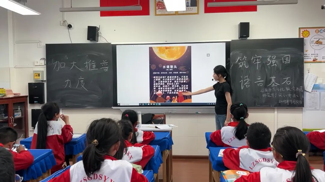 教育強國戰(zhàn)略背景下,為培養(yǎng)未來教育領(lǐng)軍人才、助力鄉(xiāng)村振興與邊疆教育發(fā)展,嶺南師范學(xué)院《教師語言》課程組十分重視師范生職業(yè)技能教育實踐。9月13日—9月18日,通過組織師范實習(xí)生、援藏支教實習(xí)生及扎根鄉(xiāng)村教育的畢業(yè)生積極參與各類推普活動,促進(jìn)了國家通用語言文字的廣泛普及,深刻體現(xiàn)了教育公平與文化傳承的時代價值。