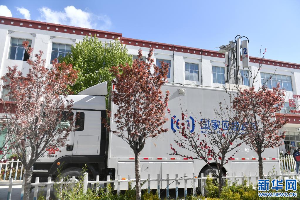 這是4月19日在拉薩市人民醫(yī)院拍攝的保障遠(yuǎn)程骨科手術(shù)順利進(jìn)行的通訊保障車(chē)輛。新華社記者 孫瑞博 攝