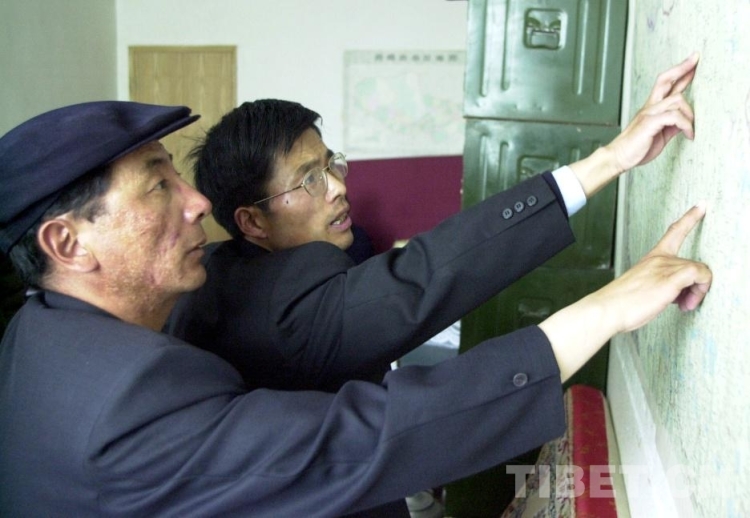 這是時任雙湖特別區(qū)(現(xiàn)雙湖縣)區(qū)委書記的范科創(chuàng)(右)與副區(qū)長珠巨(左)在研究當?shù)氐慕?jīng)濟發(fā)展規(guī)劃。為了無人區(qū)開發(fā)事業(yè),范科創(chuàng)在這里默默奉獻了15個春秋。1986年,他被西藏自治區(qū)黨委授予“優(yōu)秀黨務(wù)工作者”榮譽稱號(唐召明2001年攝)