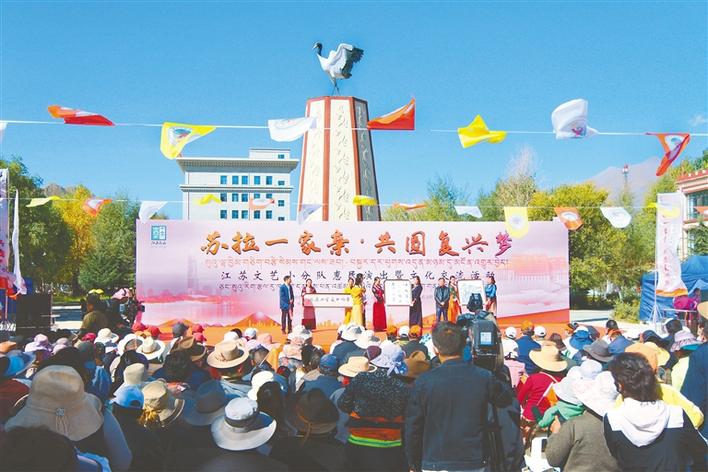 為增進(jìn)江蘇、西藏兩地人民文化交流,促進(jìn)民族團(tuán)結(jié),共同鑄牢中華民族共同體意識,由江蘇省委宣傳部、拉薩市委宣傳部、江蘇援藏前方指揮部、江蘇省文聯(lián)主辦,拉薩市文聯(lián)、拉薩市文化局、拉薩融媒、江蘇援藏對口縣區(qū)承辦的“蘇拉一家親·共圓復(fù)興夢”惠民演出暨文化交流活動于10月13日至19日在拉薩開展。本次惠民演出包含歌曲、舞蹈、木偶、魔術(shù)等,通過非物質(zhì)文化遺產(chǎn)藝術(shù)和現(xiàn)代藝術(shù)的碰撞,展示了蘇藏兩地特色藝術(shù)文化,促進(jìn)交往交流交融。