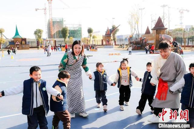 12月1日,在黃石大冶市尹家湖幼兒園就業(yè)的西藏教師赤列旦增和拉珍在教小朋友跳民族舞。[詳細]