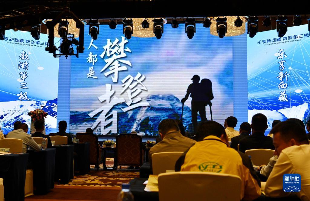 在2022年西藏日喀則旅游推介會暨數(shù)字旅游創(chuàng)新發(fā)展論壇上,國內(nèi)業(yè)界人士就數(shù)字文旅和日喀則旅游數(shù)字化發(fā)展前景進(jìn)行主題演講和對話(7月15日攝)。新華社記者 張汝鋒 攝
