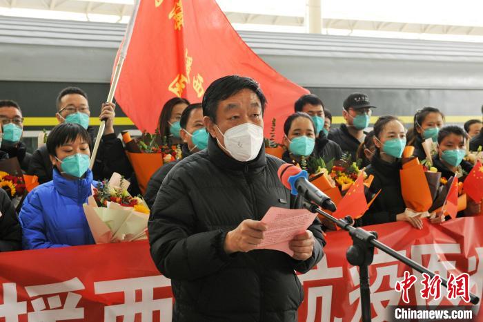 當(dāng)日,官方為醫(yī)療隊舉行歡迎儀式,工作人員手捧鮮花,以最高禮遇、最深敬意歡迎“白衣執(zhí)甲、逆行出征”的無私奉獻(xiàn)者們。青海省副省長、省疫情防控指揮部副指揮長匡湧出席歡迎儀式并講話。