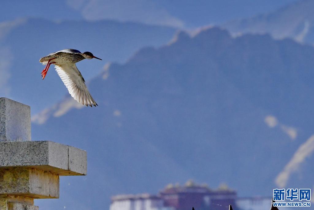 在拉魯濕地拍攝的紅腿鷸(6月2日攝)。新華社記者 張汝鋒 攝