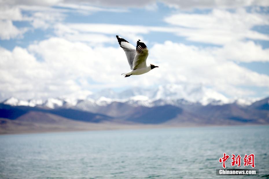 6月初,紅嘴鷗在西藏納木錯上空翱翔。隨著氣溫逐漸升高,納木錯迎來旅游旺季。納木錯藏語意為“天湖”,是中國第三大咸水湖,位于藏北高原東南部,念青唐古拉山峰北麓,拉薩市當雄縣和那曲市班戈縣境內,湖面海拔4718米。 中新社記者 陳小愿 攝