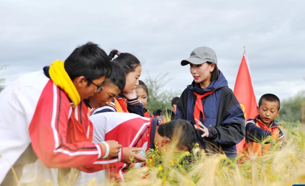 日喀則市上海實驗學(xué)校德育副校長潘杰和學(xué)生在青稞地里交流。[詳細]