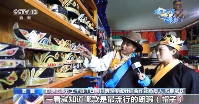 拉薩市墨竹工卡縣羊日崗村朗瑕傳統(tǒng)針織合作社負(fù)責(zé)人 索朗頓珠:我們這的姑娘小伙兒,一看就知道哪款是最流行的朗瑕(帽子),這是個(gè)去年款,這個(gè)是今年的款。你看,這兩個(gè)是牦牛角。朗瑕(帽子)很有我們藏族特色,同時(shí)也在與時(shí)俱進(jìn),看這些做工、花紋越來越精致了。