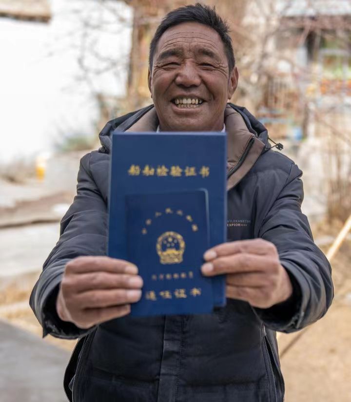 索朗扎西展示自己的船舶檢驗(yàn)證書(shū)(2月23日攝)。新華社記者旦增尼瑪曲珠 攝