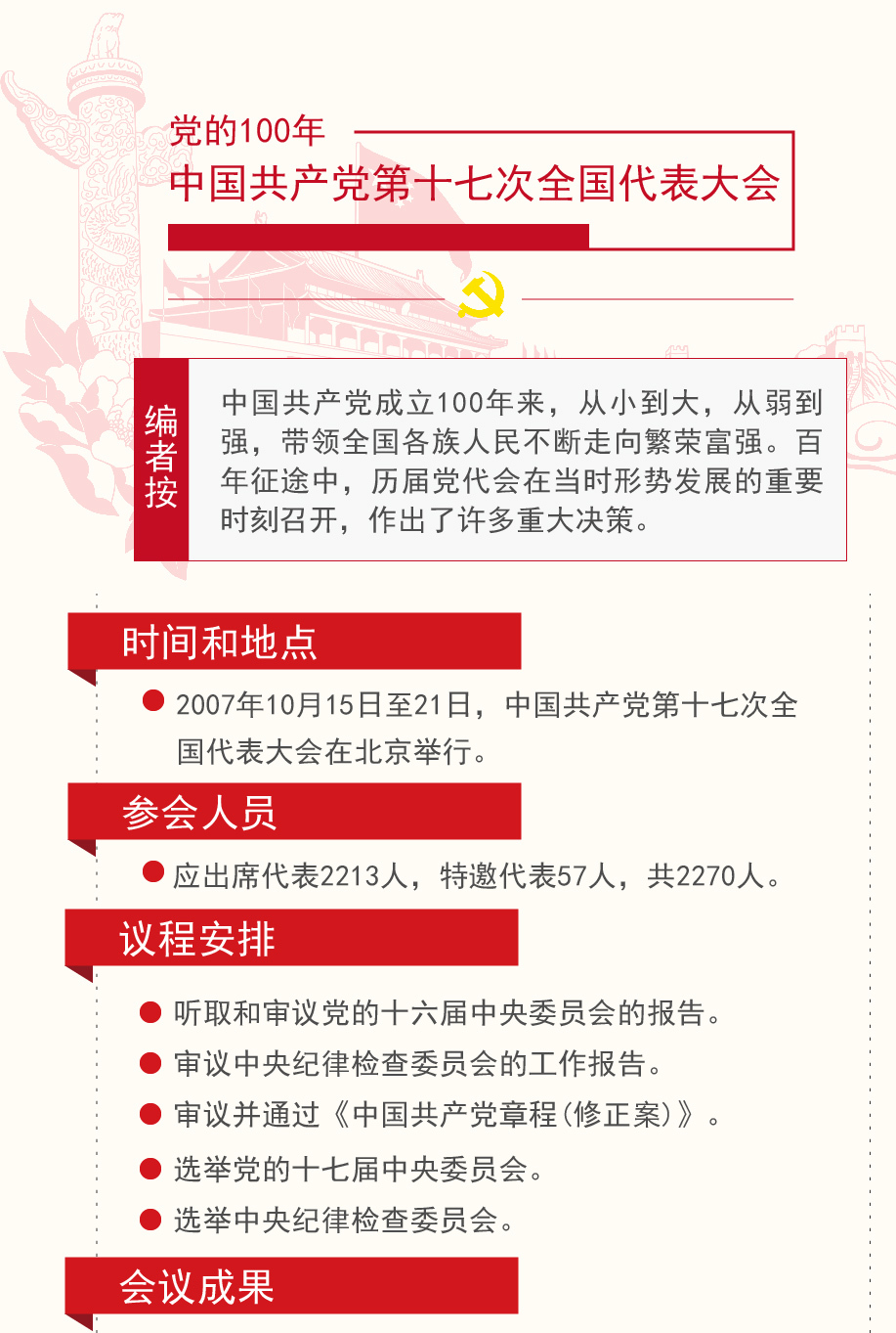 長圖|【黨的100年】中國共產(chǎn)黨第十七次全國代表大會