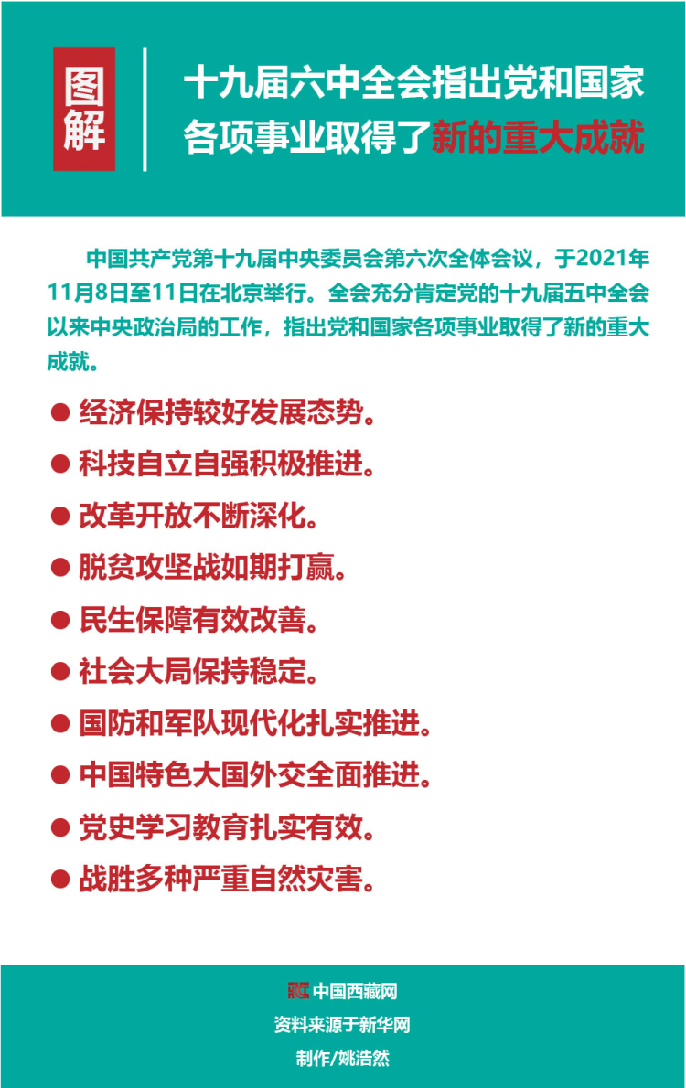 圖解丨十九屆六中全會指出黨和國家各項(xiàng)事業(yè)取得了新的重大成就