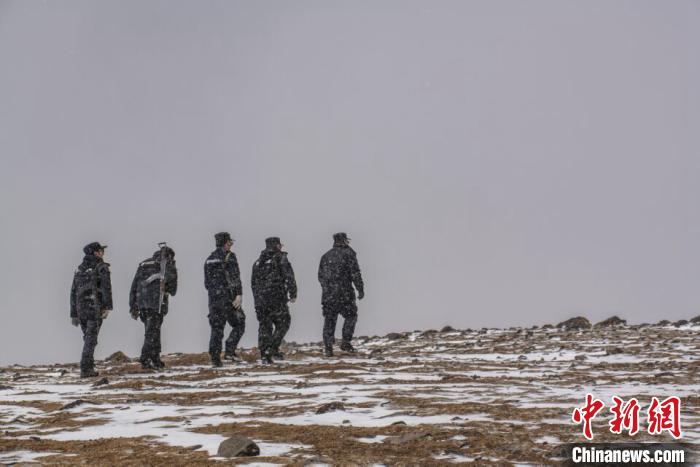 圖為可可西里巡山隊在野外巡護??煽晌骼锕芾硖幑﹫D
