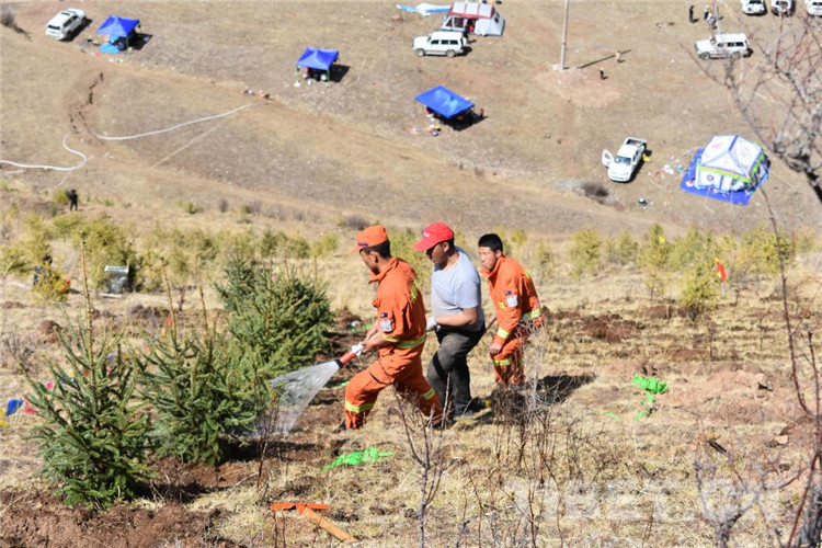 在植樹(shù)活動(dòng)中,森林消防指戰(zhàn)員分工協(xié)作,熱情高漲,扛苗散苗、揮鍬鏟土、扶苗踏實(shí)、挖坑、栽樹(shù)、蓋土等各個(gè)環(huán)節(jié)都精心對(duì)待,用心種下每一棵幼苗。為保證每棵樹(shù)苗存活率,中隊(duì)指戰(zhàn)員發(fā)揮專(zhuān)業(yè)特長(zhǎng),利用水泵澆水,植樹(shù)現(xiàn)場(chǎng)一片熱火朝天的場(chǎng)景,駐地黨政軍民一起共筑綠色長(zhǎng)城,為原本光禿禿的山頭增添了一抹抹新綠。此次義務(wù)植樹(shù)活動(dòng),中隊(duì)指戰(zhàn)員共種植幼苗200余株,澆灌樹(shù)苗20余畝。(中國(guó)西藏網(wǎng) 通訊員/吳春 陳智銀)