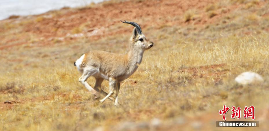 圖為奔跑的國(guó)家二級(jí)保護(hù)動(dòng)物藏原羚。 武雪峰 攝