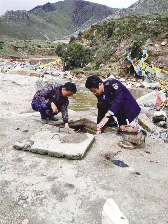 工作人員對蔡公堂鄉(xiāng)斜村水源進(jìn)行檢查。圖由采訪對象提供
