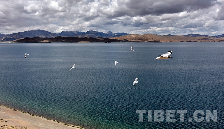 團團云朵懸停藍天,班公湖湖面微波蕩漾。湖岸藏野驢、黑頸鶴悠閑漫步;湖邊棕頭鷗滑翔游弋、魚翔淺底?!笆澜缥菁沟奈菁埂?,人們“不負青山”,也收獲了“金山銀山”。(中國西藏網 記者/王媛媛)