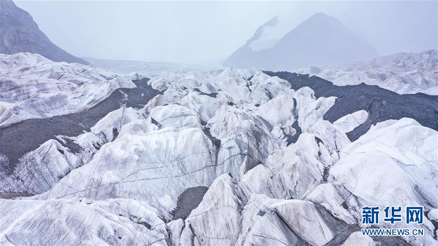 這是8月15日拍攝的崗加曲巴冰川(無人機(jī)照片)。 位于青海省玉樹藏族自治州的崗加曲巴冰川,坐落于長江源園區(qū)的各拉丹冬雪山東坡,從空中俯瞰,層疊的冰塔顯得尤為壯觀。 新華社記者 吳剛 攝