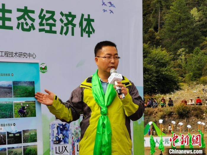 圖為西藏高原草業(yè)工程技術(shù)研究中心武俊喜博士回顧“力士·綠哈達(dá)行動”植草歷程。 張偉 攝