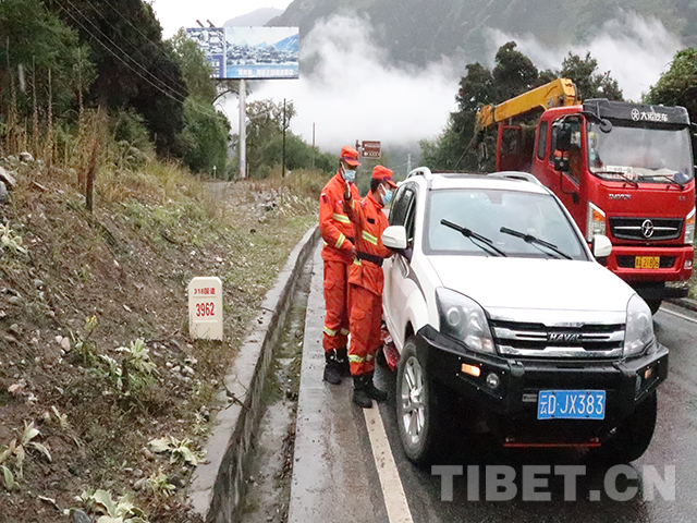在318國道波密段一處狹窄的施工路段,一輛自駕轎車遭遇爆胎引發(fā)堵車。剛搬運完道路滾石的指戰(zhàn)員沒顧上喝一口水,馬不停蹄地前去疏導交通,該中隊駕駛員尊珠加措二話沒說,鉆進了車底,拿起扳手嫻熟地換上備胎,檢修發(fā)熱部件。等從車底出來,嶄新的防火服已沾滿油漬和泥痕,車主連忙給他遞上了礦泉水。交談中,指戰(zhàn)員知悉了車主曾是一名在藏服役五年的老兵,一種相見如故的親切感油然而生,在回敬車主標準的軍禮后,大家又匆匆前往周邊村莊開展防火宣傳。