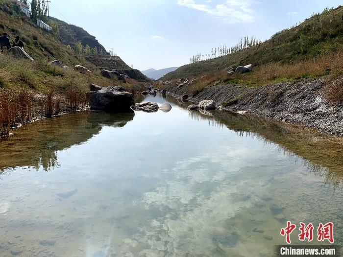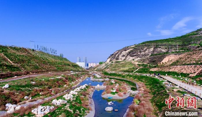 10月12日拍攝的生態(tài)修復(fù)項(xiàng)目治理后的火燒溝,河水清澈見底,溝壑險(xiǎn)坡重披綠裝。 中新社記者 孫睿 攝