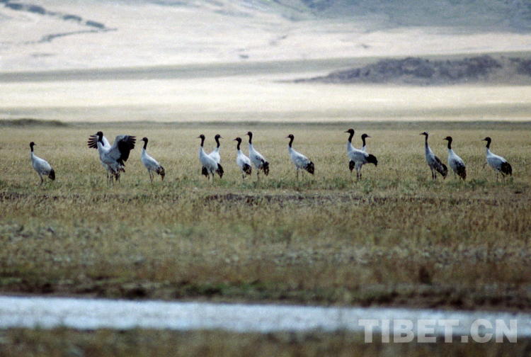 這首詩真實(shí)反映了藏北高原的面貌。這是在藏北高原申扎縣濕地棲息的國家一級(jí)保護(hù)動(dòng)物黑頸鶴(唐召明2001年攝)[詳細(xì)]