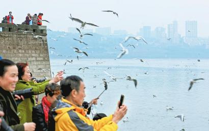 孟冬時節(jié),久違的暖陽普照在瀘州市東門口長江江面上,數(shù)百只紅嘴鷗翩翩起舞,休閑的市民盡情享受著大自然的美,笑語聲、風(fēng)聲、水聲、鳥聲相互交織,回蕩著自然生態(tài)和諧的旋律。江河清澈,風(fēng)景優(yōu)美,飛抵瀘州越冬的紅嘴鷗逐年增多,這是瀘州全面推行河長制帶來的成效。