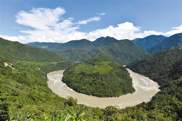 圖為西藏林芝市墨脫縣境內(nèi)的雅魯藏布江果果塘大拐彎。新華社記者 覺果 攝