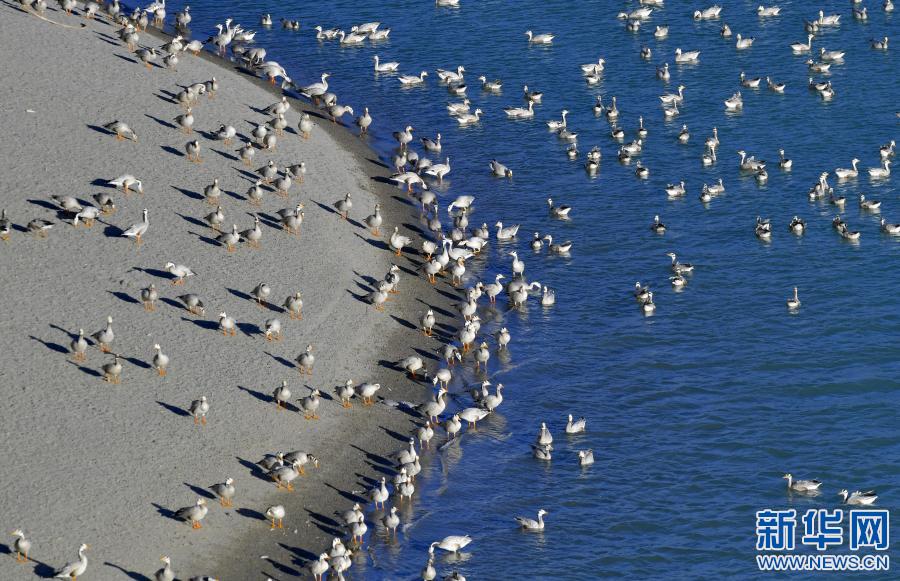 西藏雅尼國家濕地公園水鳥翔集(2月2日攝)。新華社記者 張汝鋒 攝